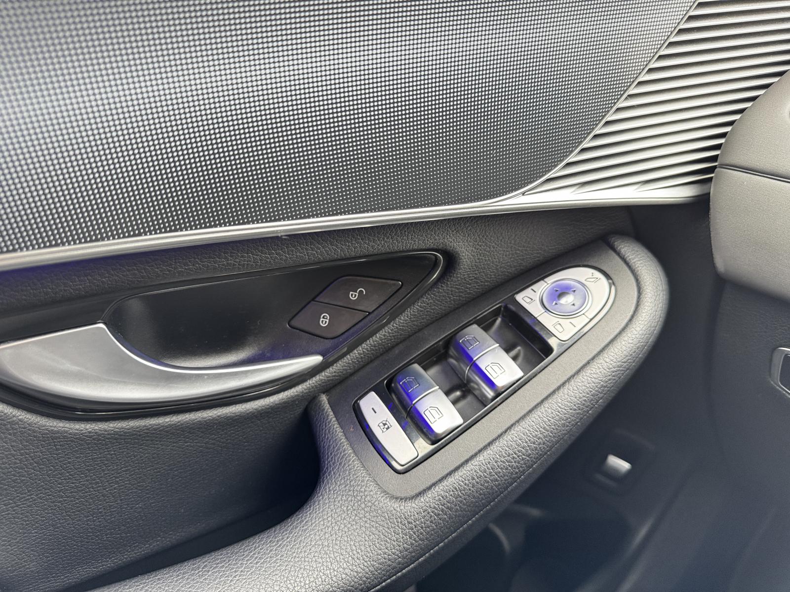 Embaladeiras das portas iluminadas com inscrição "Mercedes-Benz"